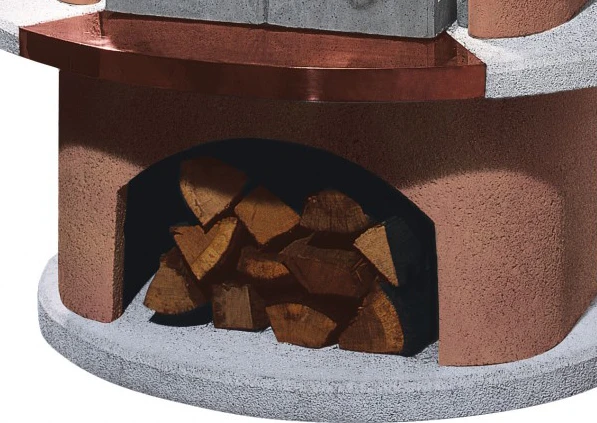 Nur die Bauteile aus Feuerbeton kommen mit Glut und Flammen in Berührung. Eine doppelwandige Bauweise sorgt dabei für Sicherheit, da zwischen Feuerraum und Außenschale Luft zirkulieren kann.
