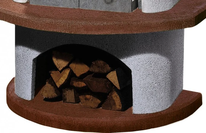 Nur die Bauteile aus Feuerbeton kommen mit Glut und Flammen in Berührung. Eine doppelwandige Bauweise sorgt dabei für Sicherheit, da zwischen Feuerraum und Außenschale Luft zirkulieren kann.