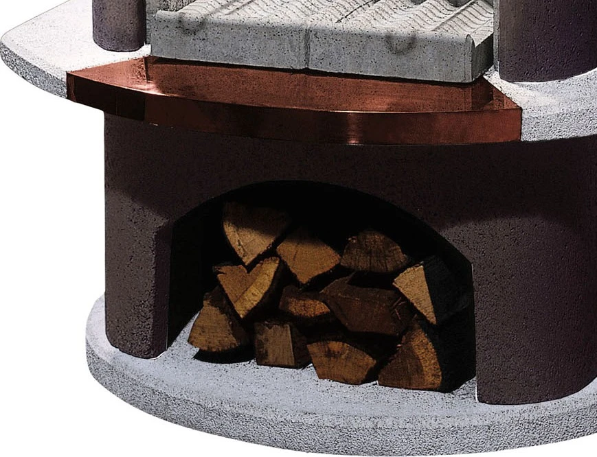 Vor dem Feuerraum ist der Gartenkamin mit einer Kupferblende ausgestattet, dank der sich Verschmutzungen leicht entfernen lassen.
