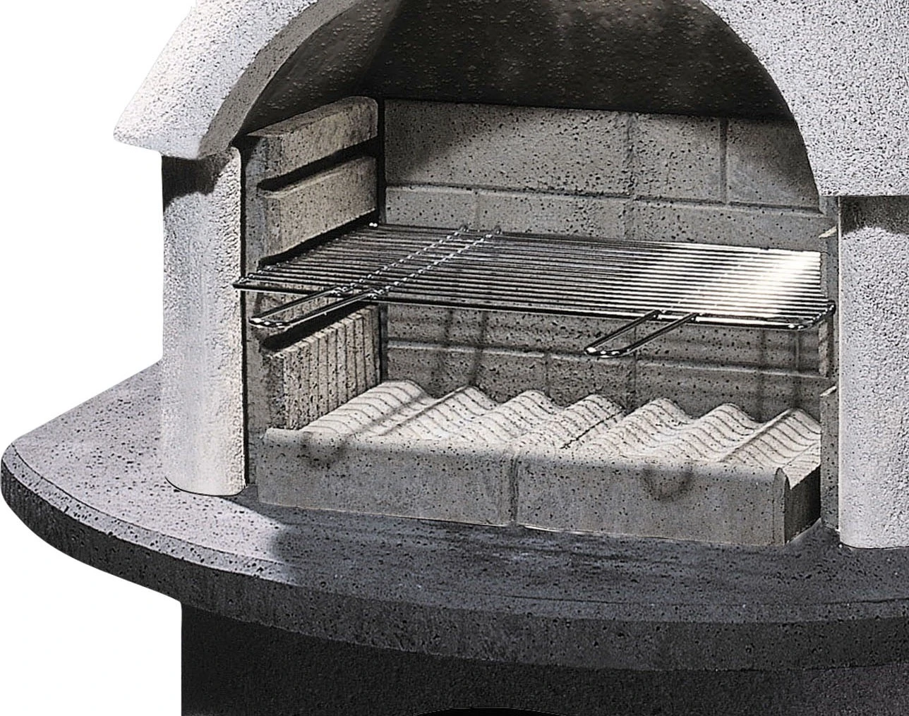 Nur die Bauteile aus Feuerbeton kommen mit Glut und Flammen in Berührung. Eine doppelwandige Bauweise sorgt dabei für Sicherheit, da zwischen Feuerraum und Außenschale Luft zirkulieren kann.