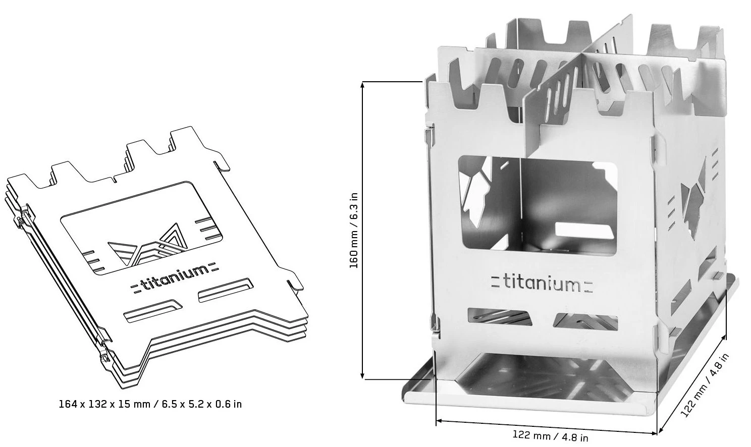 Nach dem Benutzung lässt sich der Hobo Kocher im Handumdrehen wieder zusammenklappen und besonders platzsparend in der im Lieferumfang enthaltenen Tasche verstauen. Mit seinem Abmessungen von nur 164 x 132 x 15 mm (zusammengelegt) findet er sicher in jedem Rucksack Platz und ist mit seinen 450 Gramm fast 200 Gramm leichter als die Edelstahl-Variante.