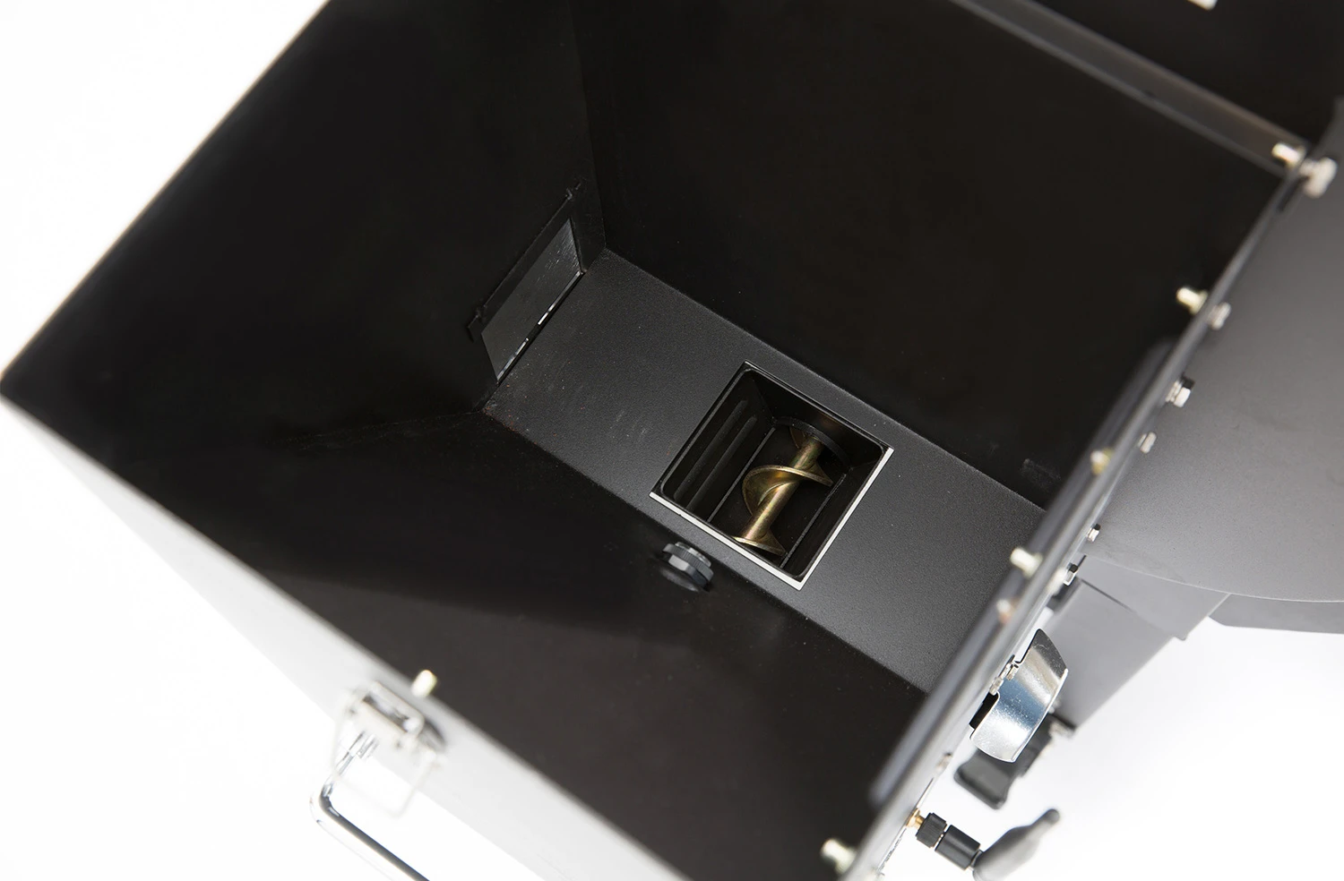 - Pellet Behälter mit 9 kg Fassungsvermögen und Entleerungsklappe
