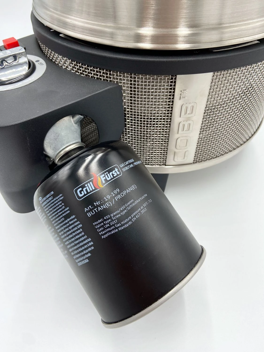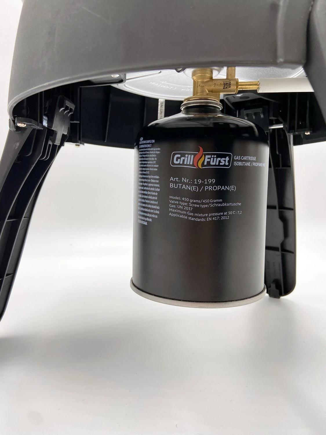 Der Vorteil von Gaskartuschen liegt hierbei auf der Hand. Mit 450g können Sie wunderbar für einige Stunden Grillen oder Kochen und grade unterwegs ist eine große Gasflasche nicht praktikabel. Die Kartusche passt bequem in den Kofferraum oder Rucksack und ist stets zur Hand fürs Grillen im Park oder beim nächsten Campingausflug. Ist die Kartusche leer, wird Sie einfach gegen eine andere ausgetauscht und es kann weitergehen.