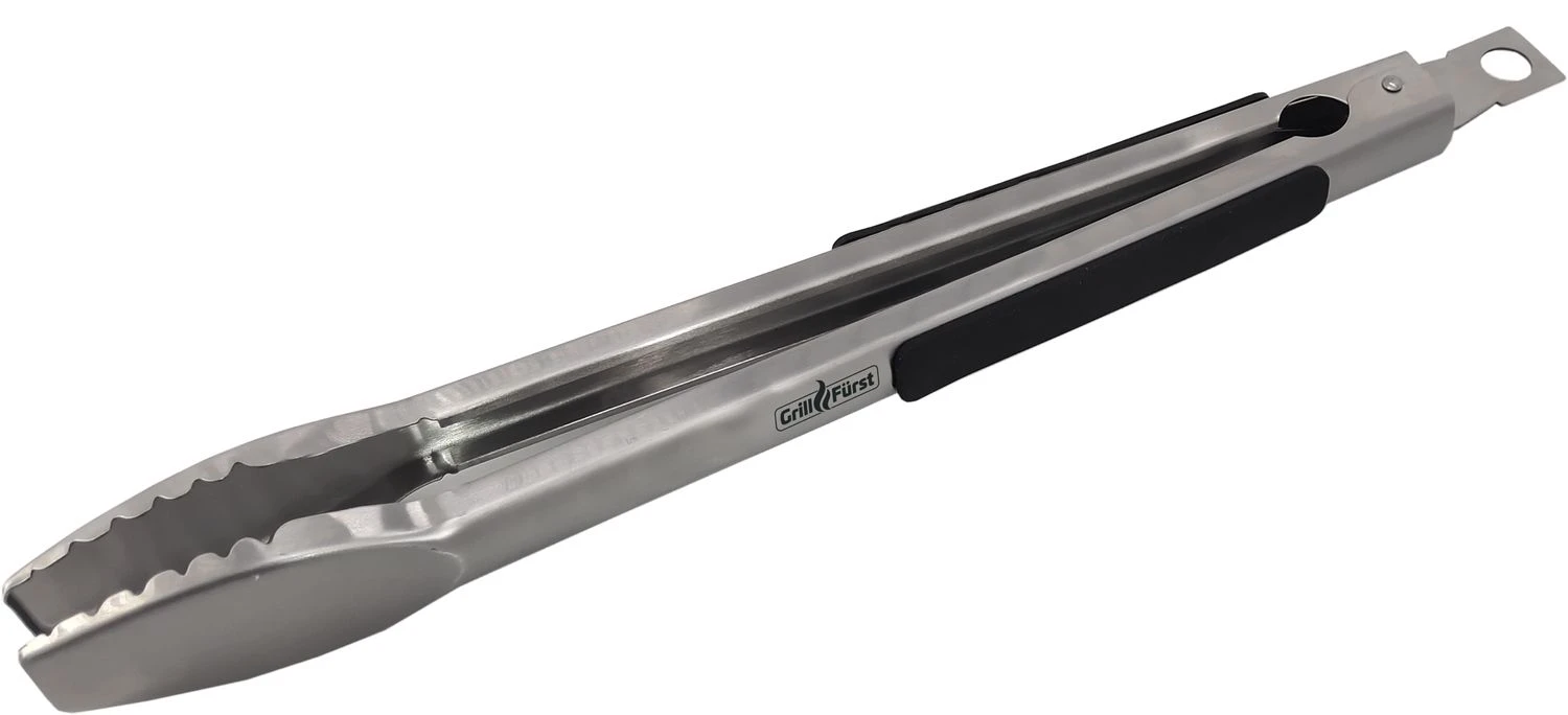 - Grillzange, 50 cm mit geriffelter, extra großer Aufnahme und Verschlusssystem