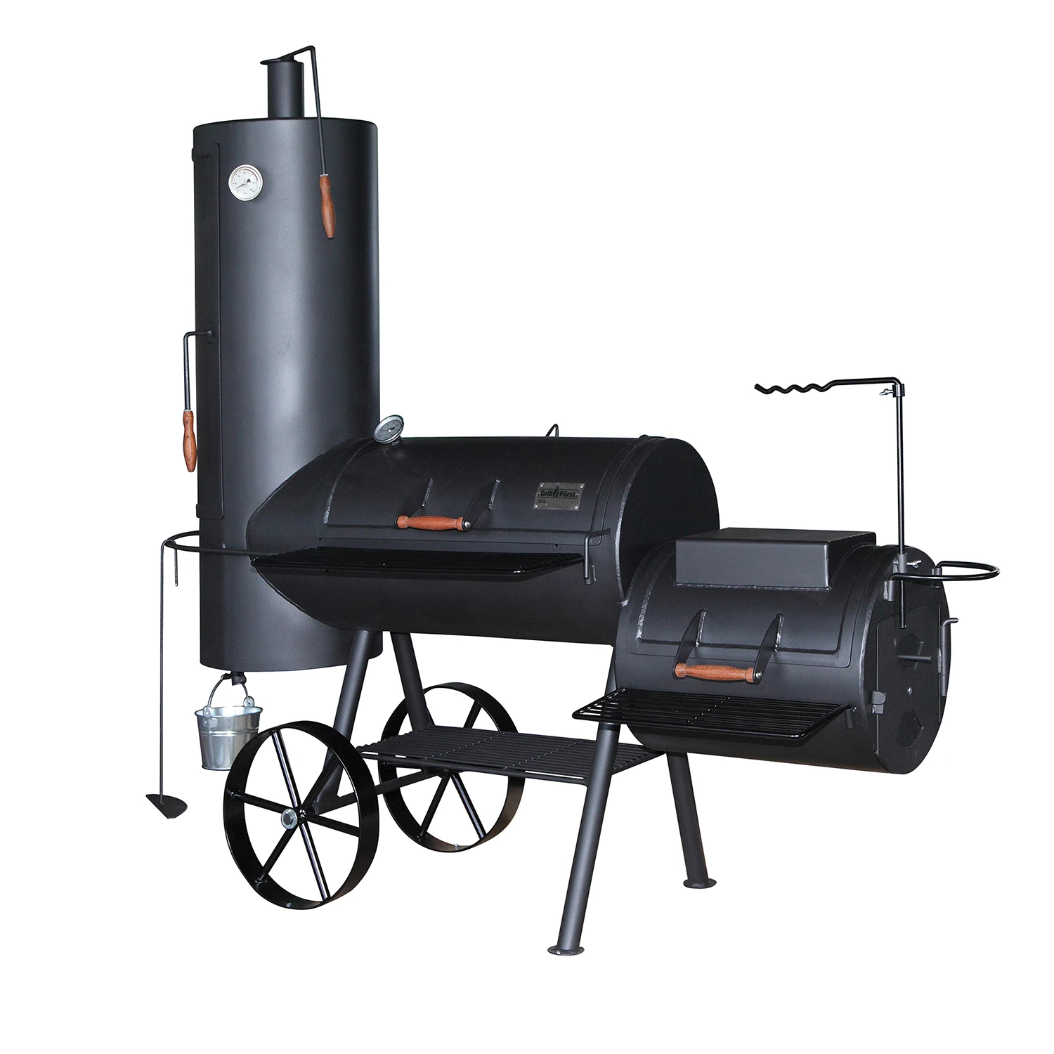 Immernoch Wünsche offen? Mit der großen Auswahl an Smoker Zubehör lässt sich diese Top-Ausstattung nochmal aufstocken. Z. B. mit einem Schwenkarm für die Kochstelle, Warmhalterosten, Hitzeleitblech, Deckelabstandhalter, Abdeckhaube und Beistelltisch.