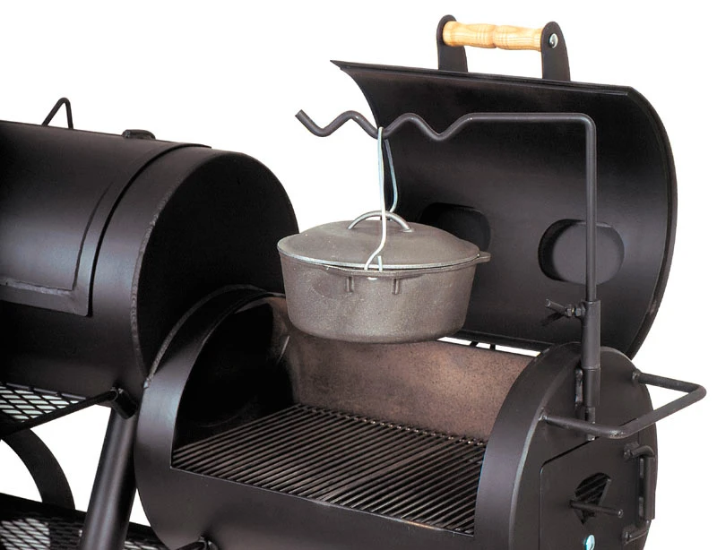 Der Schwenkarm von JOE´s Barbeque dient als Halterung für Kochgeschirr und Zubehör mit Henkel wie beispielsweise gusseiserne Töpfe, Schalen, Kannen oder ähnlichem.