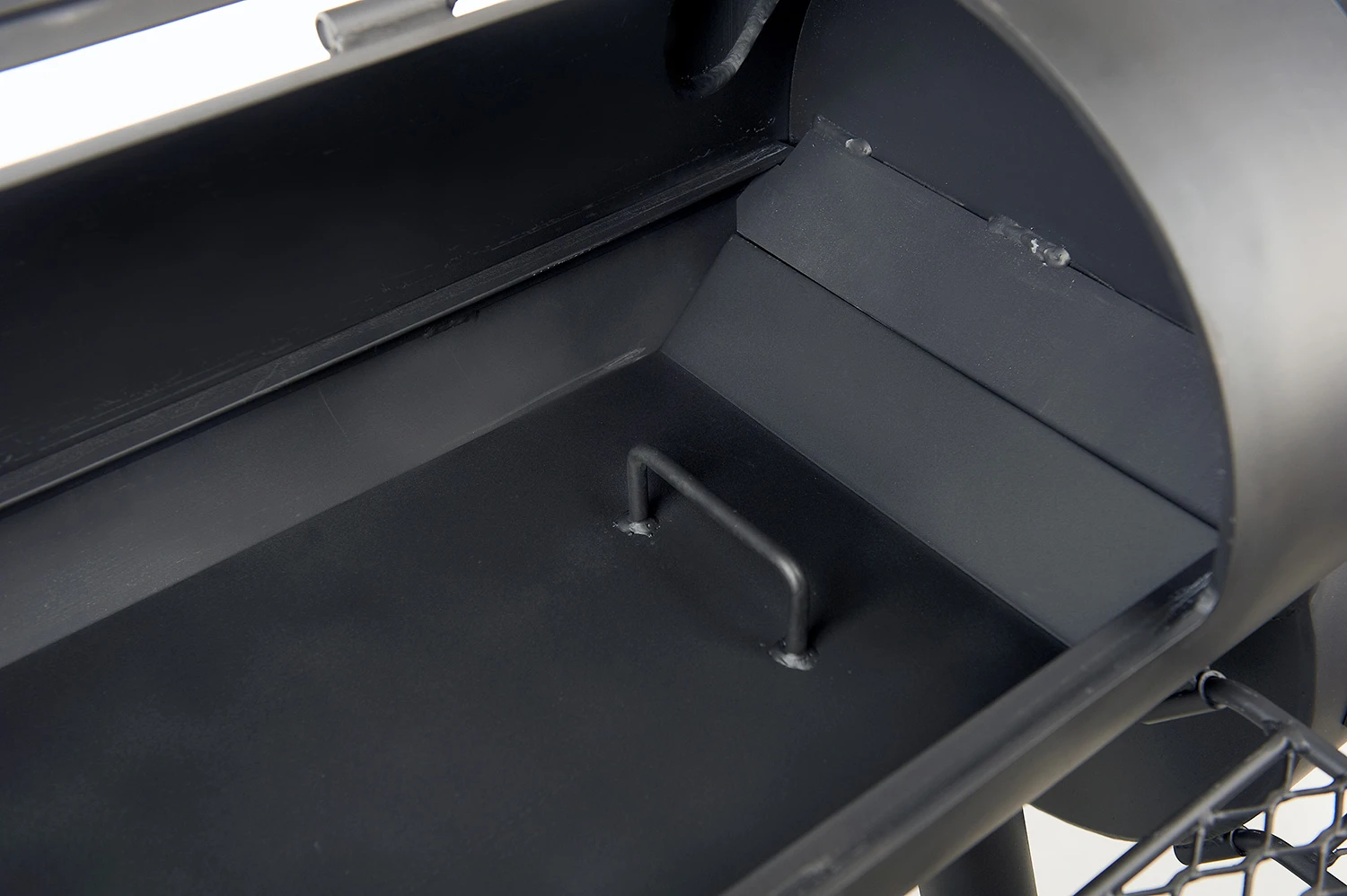 Der Korpus des Smokers besteht aus einem 6,35 mm starkem Stahlrohr und wird in Handarbeit sauber verarbeitet. Hierdurch ist der massive Longhorn Smoker fast unverwüstlich.