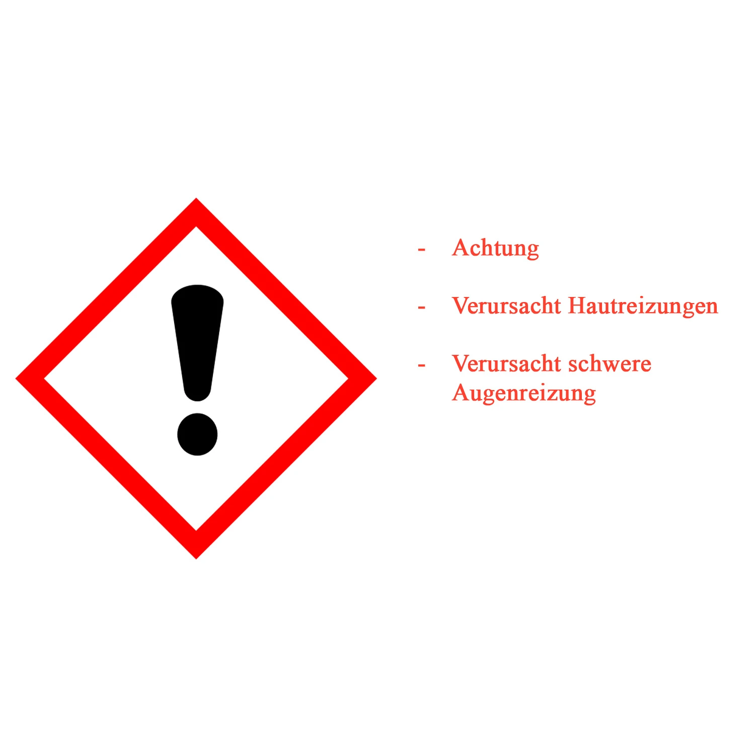 Gefahrenhinweise: Achtung. Verursacht Hautreizungen. Verursacht schwere Augenreizungen.