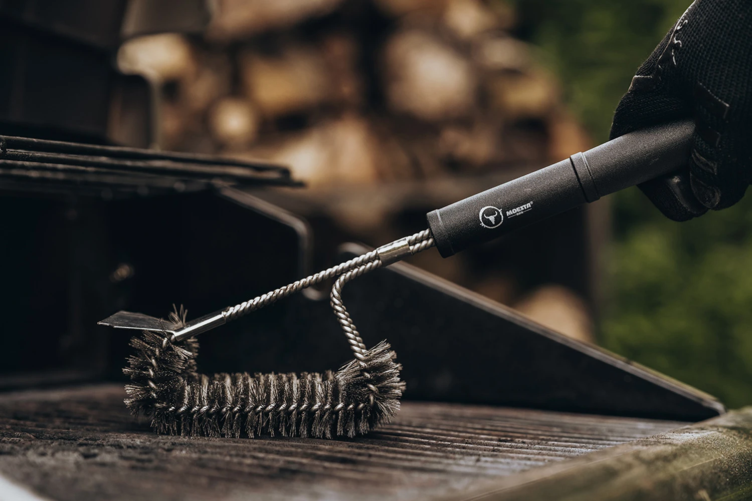 Mit dem großen Griff liegt die Grillbürste gut in der Hand und ermöglicht damit eine kraftvolle Reinigung. Eine praktische Aufbewahrungstasche liefert Moesta direkt mit dazu.