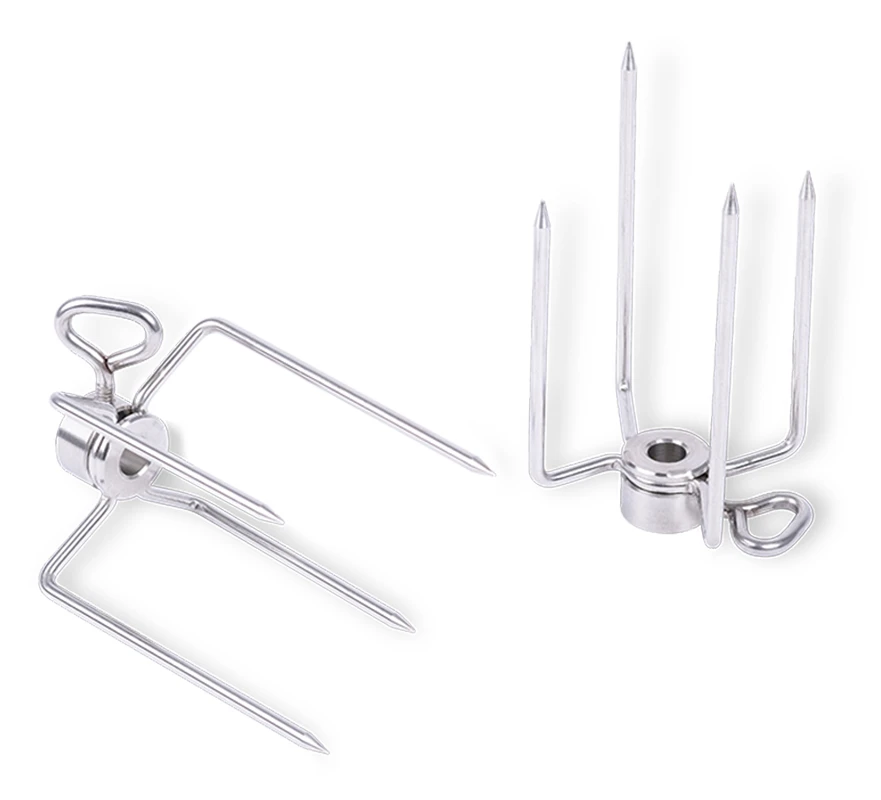 Das Rotisserie Set besteht komplett aus Edelstahl und wird mit Forken, Kontergewicht, Spieß und Motor geliefert.