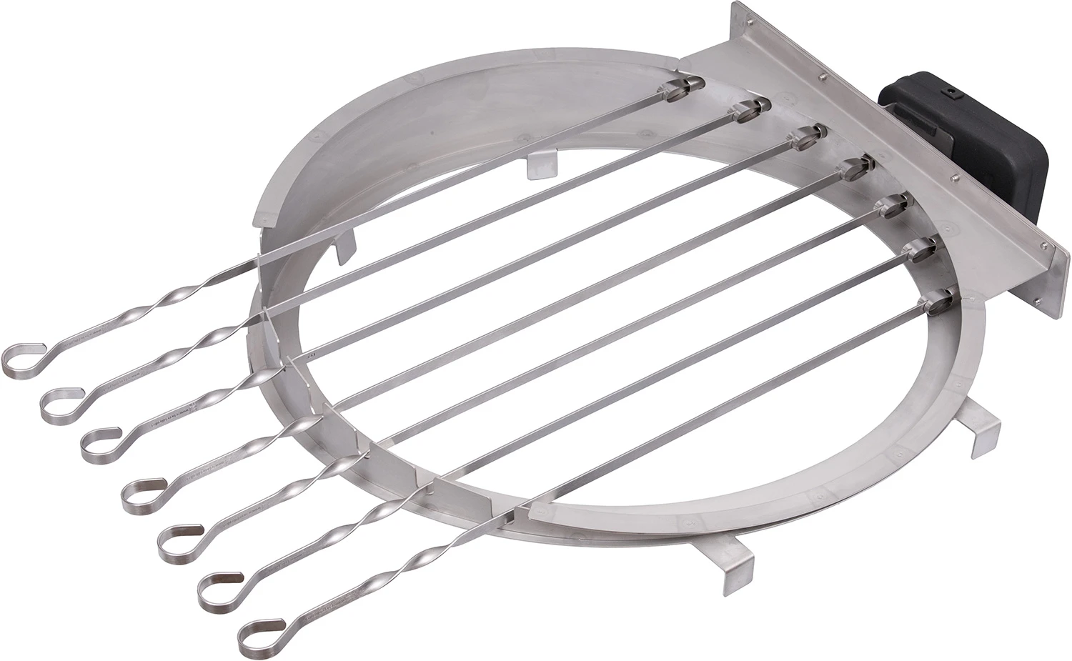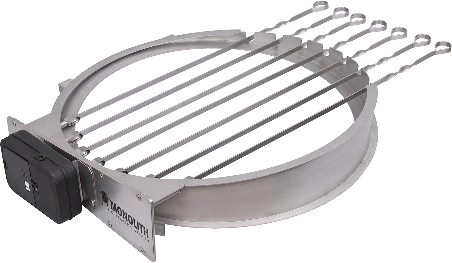 Mit dem Spieß-Set aus Edelstahl für die MONOLITH Rotisserie wird der Keramikgrill zum Mangal- bzw. Churrasco-Grill.