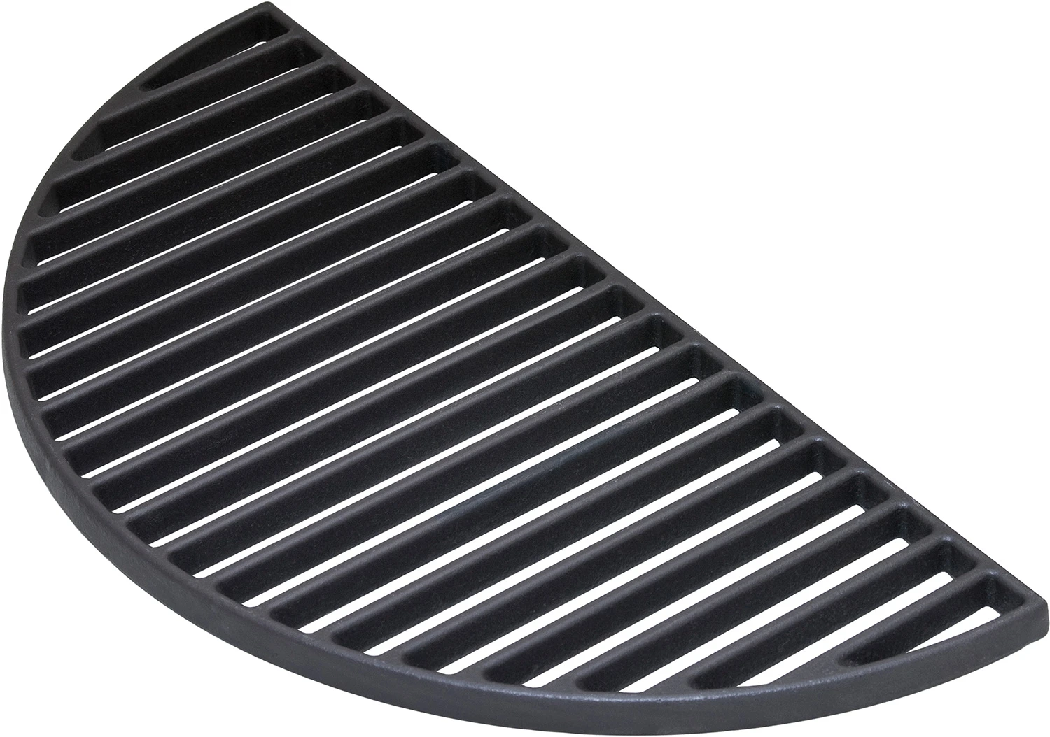 Der halbkreisförmige Rost aus Gusseisen nimmt die halbe Grillfläche des LeChef ein und lässt sich zusammen mit einem der Edelstahl-Roste oder einem weiteren Gussrost nutzen.