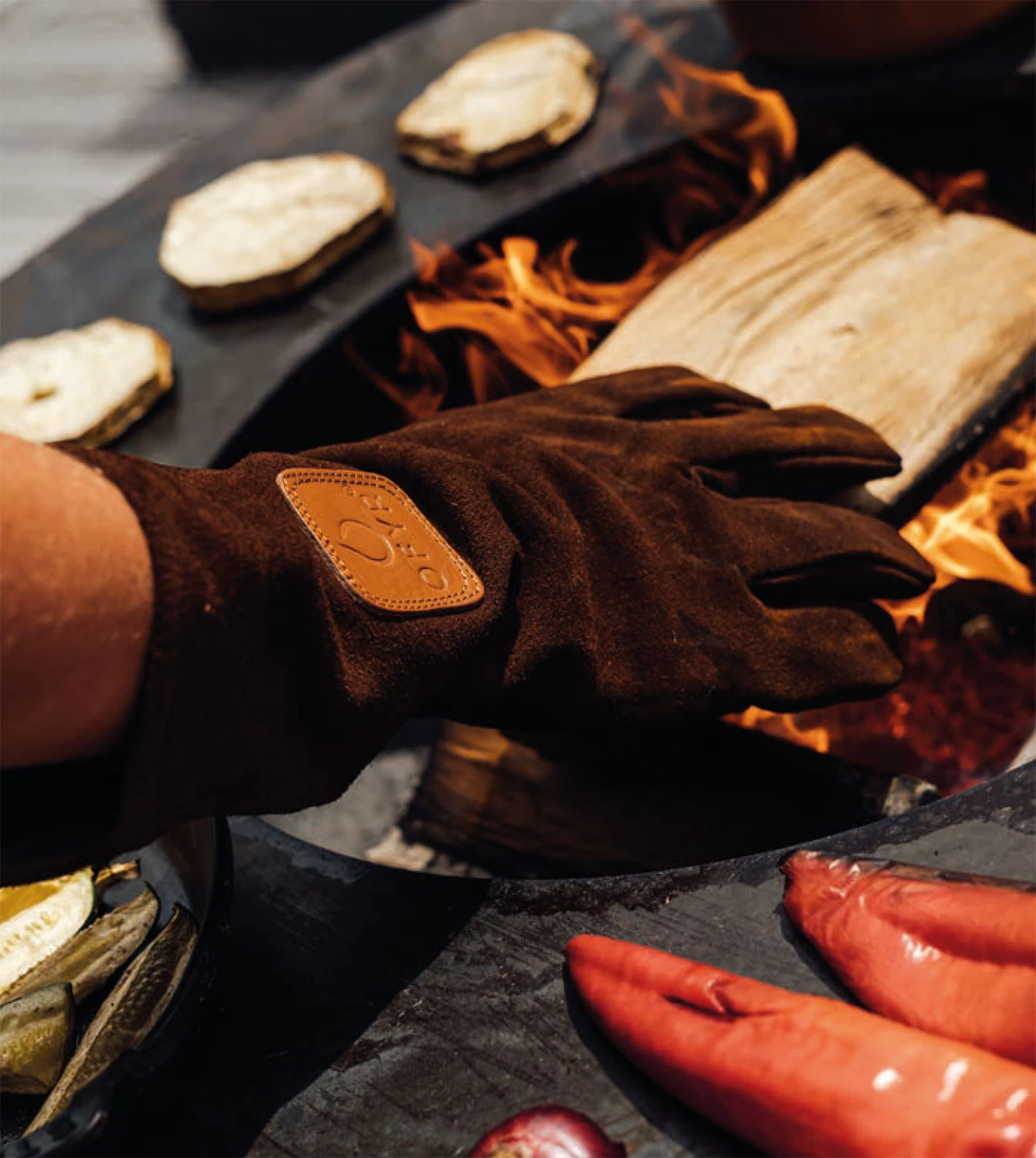 Die OFYR Leder Grillhandschuhe sind aus hochwertigem, braunem Wildleder gefertigt, das nicht nur schwer entflammbar, sondern auch bis zu 250 °C hitzebeständig ist. So sind Ihre Hände beim Hantieren an Grill und Feuerplatte immer geschützt – egal ob Sie Holz nachlegen, das Grillgut auf der Platte oder dem Rost wenden oder heißes Zubehör anfassen wollen.