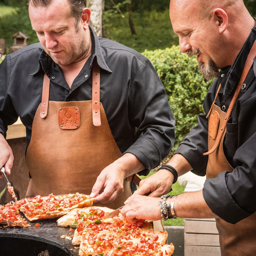 Mit der OFYR Lederschürze in Braun sind Sie beim Grillen auf Ihrer Feuerplatte immer perfekt gekleidet. Sie bietet effektiven Schutz vor der Hitze und Ölspritzern beim Hantieren an der heißen Platte.