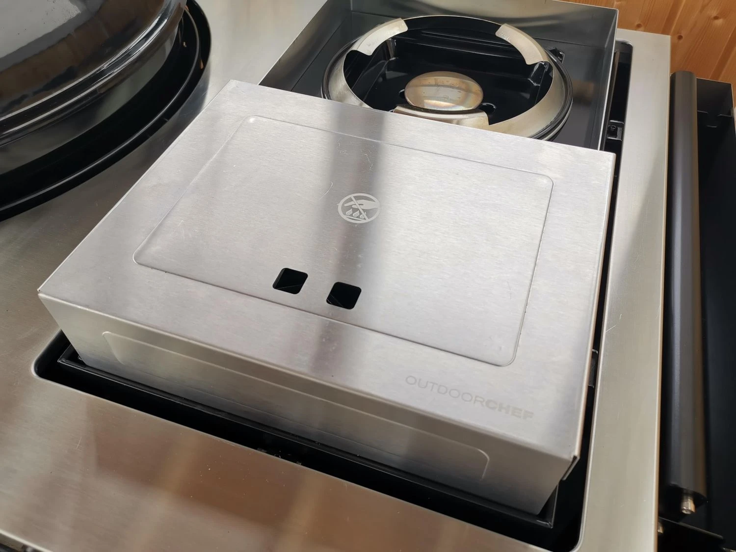 Die Aufheizabdeckung aus Edelstahl ist passend für den Outdoorchef Lugano und dient dem schnellen und gleichmäßigem Vorheizen der Steak-Zone.