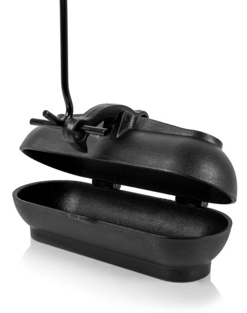 Durch einen ausgeklügelten Kippriegel-Mechanismuss lässt sich der Gussbräter sicher verschließen und gleichzeitig ganz leicht aus dem Feuer nehmen. Dazu wird einfach in die obere Öse des Riegels ein Deckelheber eingehakt. Der Riegel hält beim Anheben den Deckel geschlossen, so dass der Inhalt nicht herausfallen kann. Zum Öffnen des Deckels einfach den Deckelheber in untere Öse des Riegels einhaken.