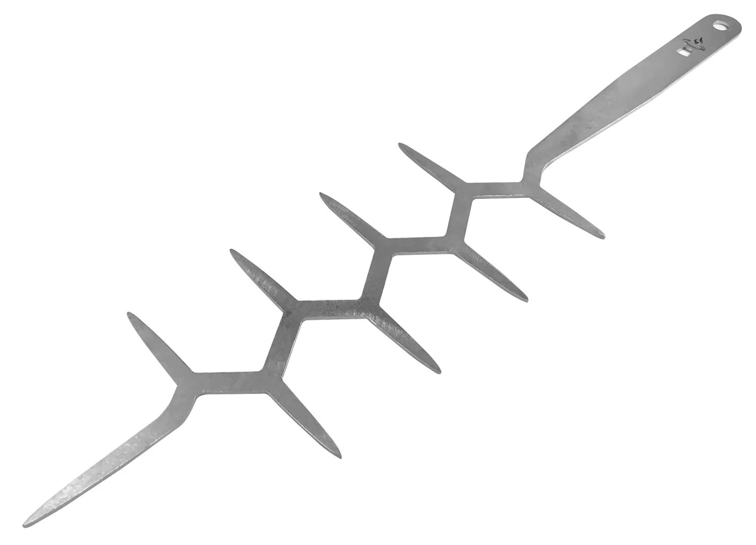 Der Remundi Grillspieß Achilles kann aufgrund seiner besonderen Form im Vergleich zu anderen Grillspießen einfach von der Seite bestückt werden.