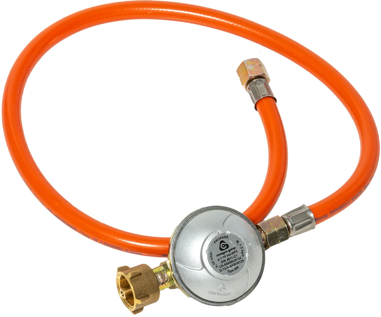 Druckregler mit Anschlussschlauch für die Rösle Vision G3 und G4 Gasgrills, aber auf für viele andere 50 mbar Geräte – auch von anderen Herstellern.