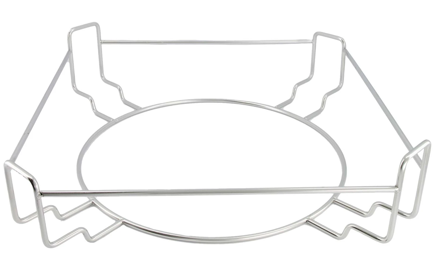 Die Halterung wird einfach auf die Feuerbox aufgesetzt, der beide oder nur eine Hälfte des Deflektorsteins darin eingesetzt und der Grillrost darüber platziert. So können sie ganz nach Belieben auf der halben oder der gesamten Grillfläche eine indirekte Zone schaffen.