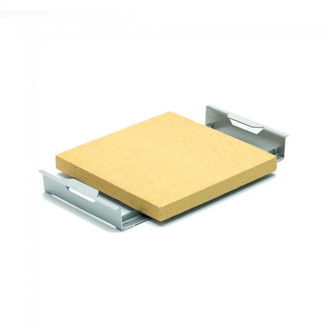 Der Stein besteht aus Schamott. Das Material ist nicht nur ein sehr guter Wärmespeicher, sondern sorgt mit seiner porösen Stuktur dafür, dass der Pizzateig schön knusprig.