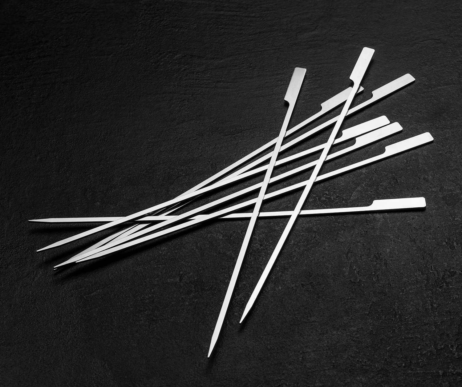 Gefertigt aus elektropolierten, lebensmittelechtem Edelstahl können die 30 cm langen Spieße immer wieder verwendet und dann einfach in der Spülmaschine gereinigt werden.